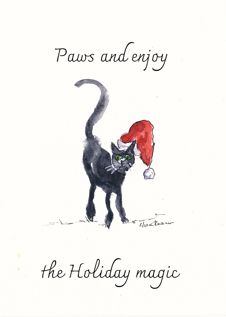 Bring a touch of seasonal charm to your holiday greetings with this delightful watercolor cat card. Featuring an adorable hand-painted cat illustration and the festive message “Paws and Enjoy the Holiday Magic”, this card is perfect for cat lovers, pet parents, and anyone who enjoys whimsical holiday artwork.