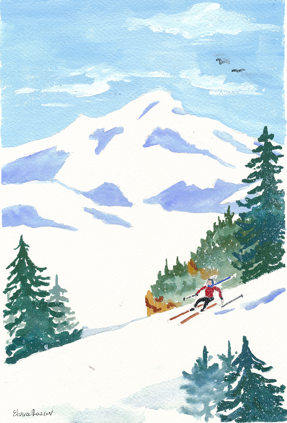 Skiing in the Sunshine — Original Gouache (9 x 12 inches)