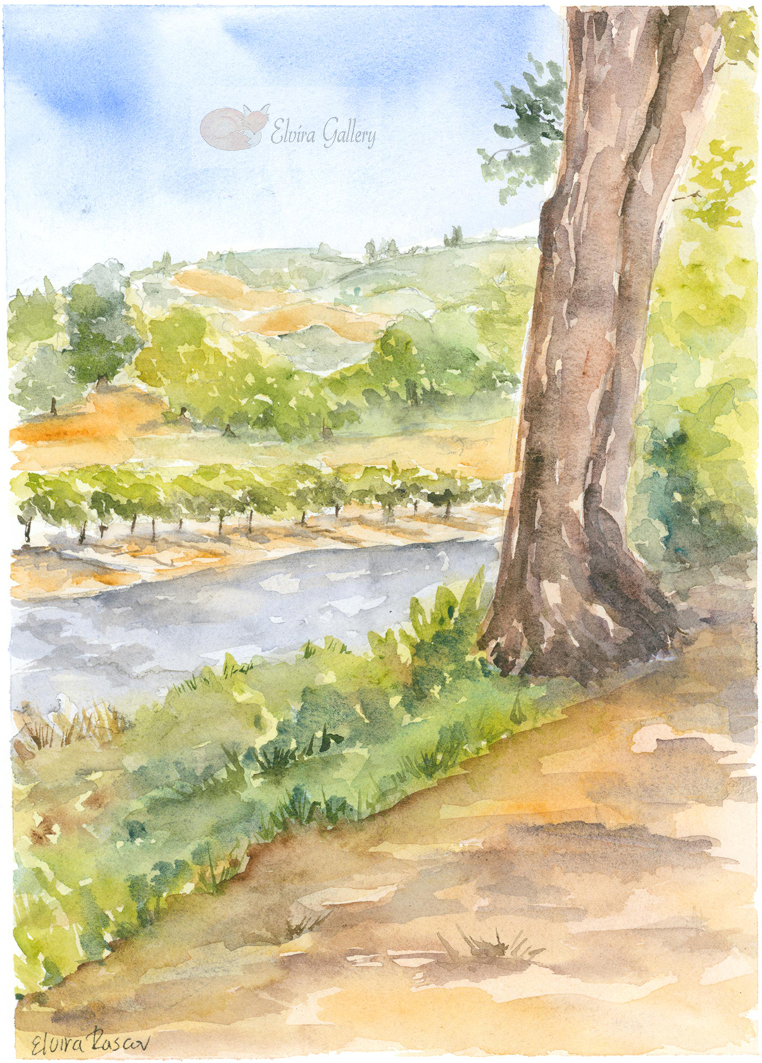 Winery in the Sierras original Watercolor art. by © Elvira Rascov